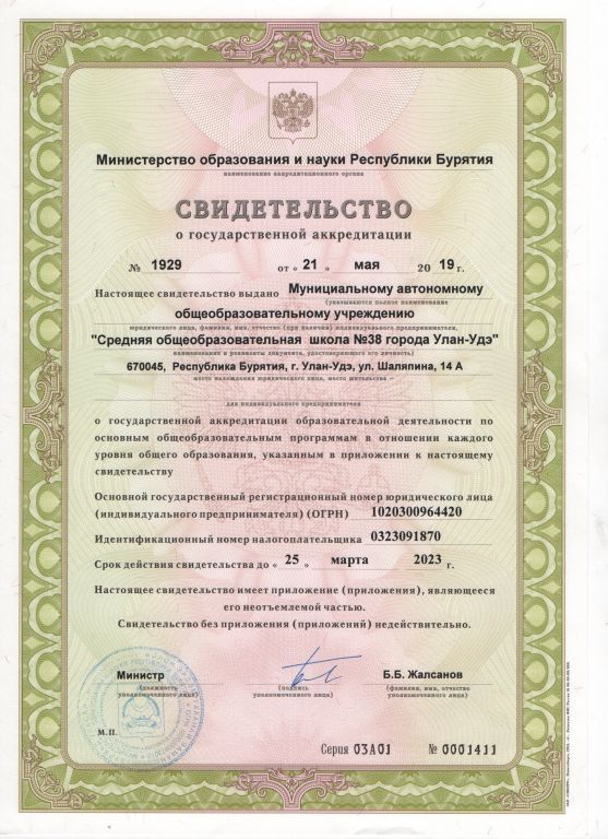Сокращенное наименование образовательной организации* МАОУ "СОШ №38 г.Улан-Удэ"